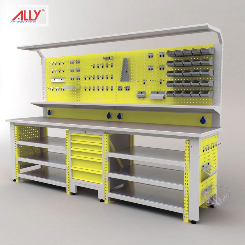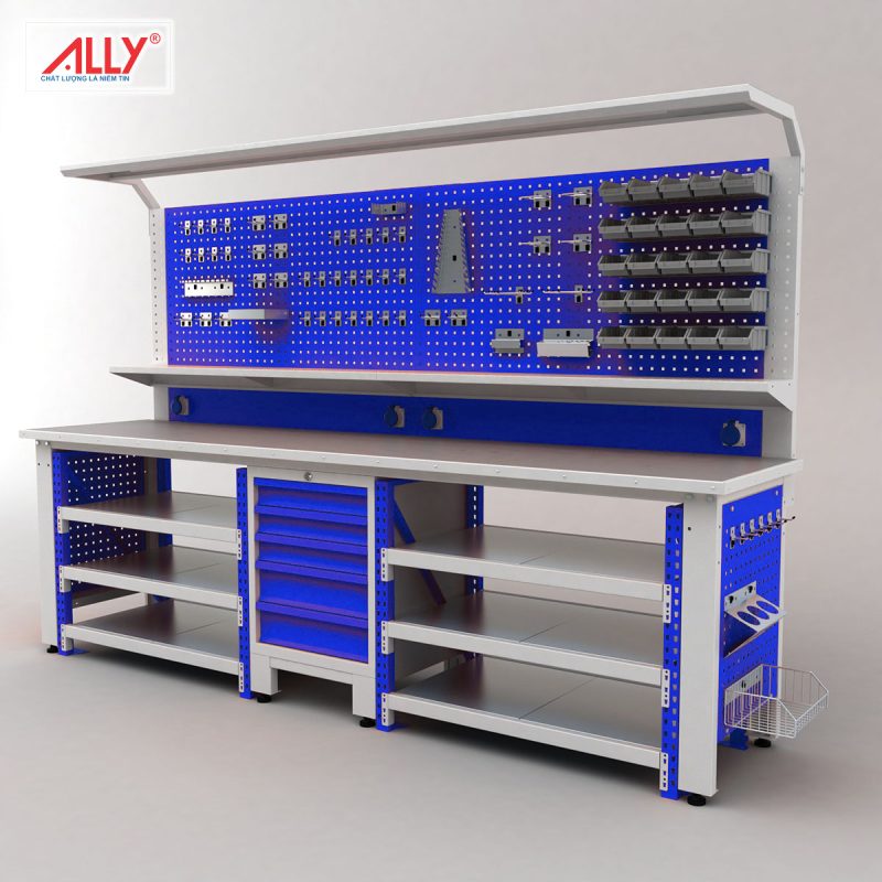 bàn nguội cơ khí, bàn nguội thao tác, bàn thao tác cơ khí, bàn làm việc cơ khí, bàn nguội ALLY QT-BN09, bàn cơ khí công nghiệp