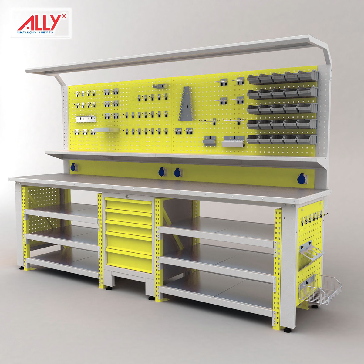 Bàn nguội thao tác cơ khí ALLY QT-BN09 là lựa chọn tối ưu cho các xưởng sản xuất, nhà máy, phòng kỹ thuật cần một không gian làm việc chắc chắn, ổn định và an toàn. Với thiết kế chuyên nghiệp và độ hoàn thiện cao, sản phẩm mang lại hiệu quả vượt trội trong các công việc thao tác, lắp ráp, sửa chữa.